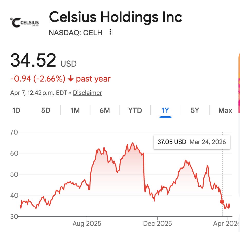 So scanner data is showing a 12.8% growth for the quarter and sales for Celsius reached $1.46 billion in net sales, versus $1.355 billion in 2024.