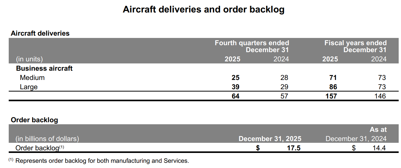 Aircraft deliveries is up sharply in 2025 from 146 to 157 aircrafts. In 2021, Bombardier had delivered only 120 aircraft. The order backlog is up also significantly by $3.1 billion.