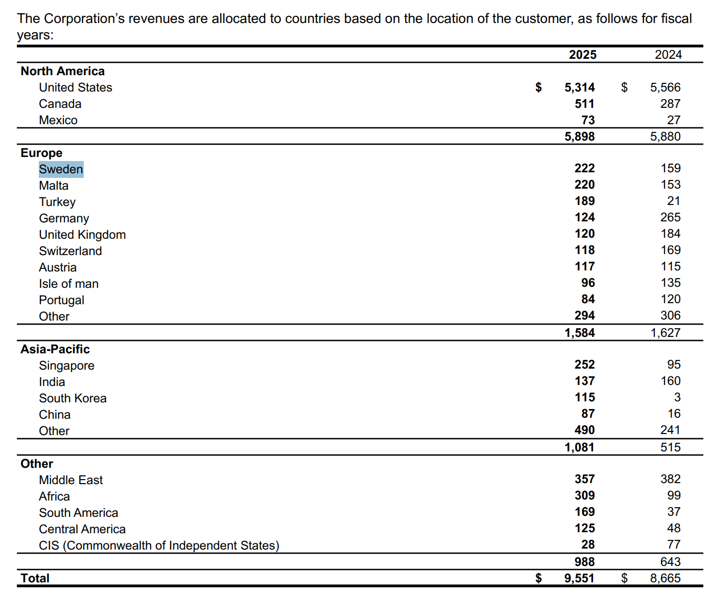 Bombardier kept hitting on all cylinders - record booking, paying down debt, Global 8000 certified on time, record free cash flow of more than $1 billion, and adjusted EPS up 50%. Executive Management has executed perfectly on this turnaround all hands on deck. At the same time the tariff risk became non existent as the (now illegal!) 25% IEEPA tariff impacted only marginally Canadian exports - as only goods not compliant to USMCA were subjected to the 25% tariff.