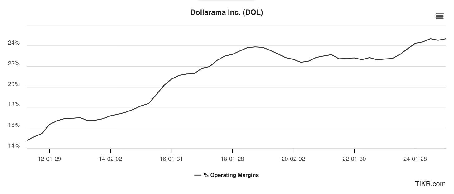 In a nutshell, Dollarama operates very efficient dollar stores across Canada with a dominant market share of around 65% to 75% (based on my own analysis) of the dollar stores segment.