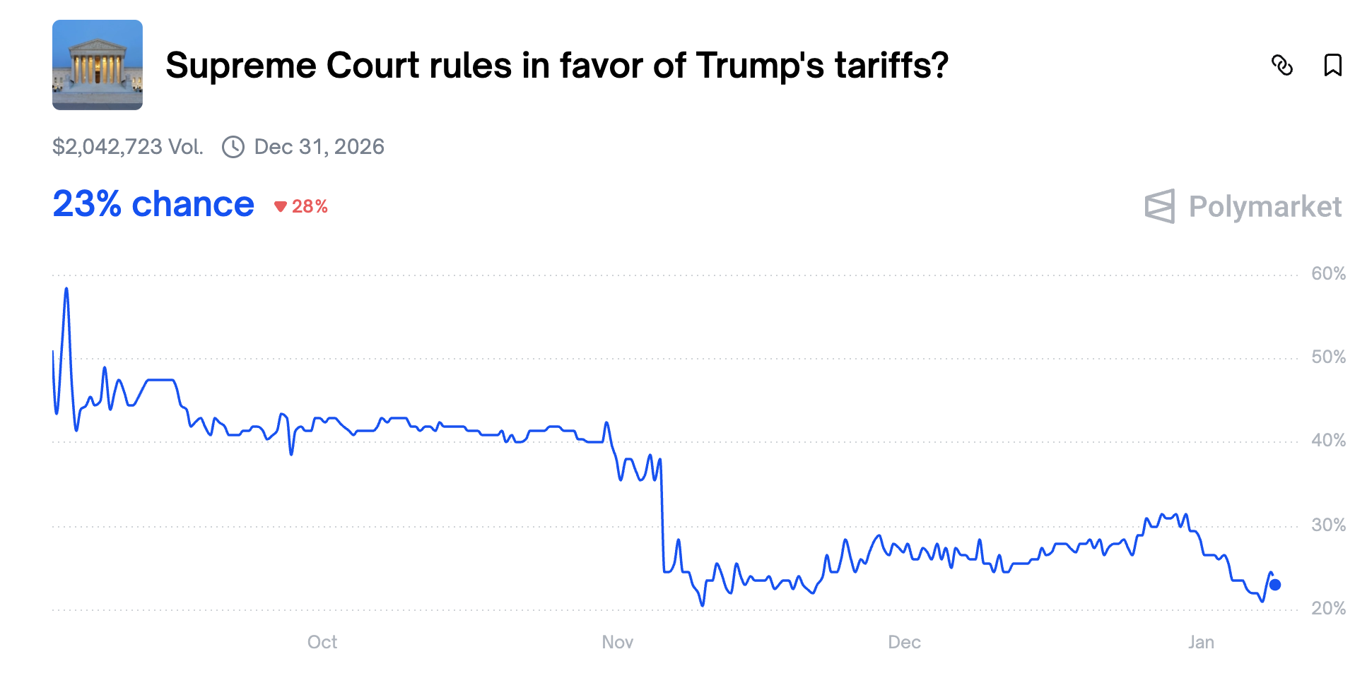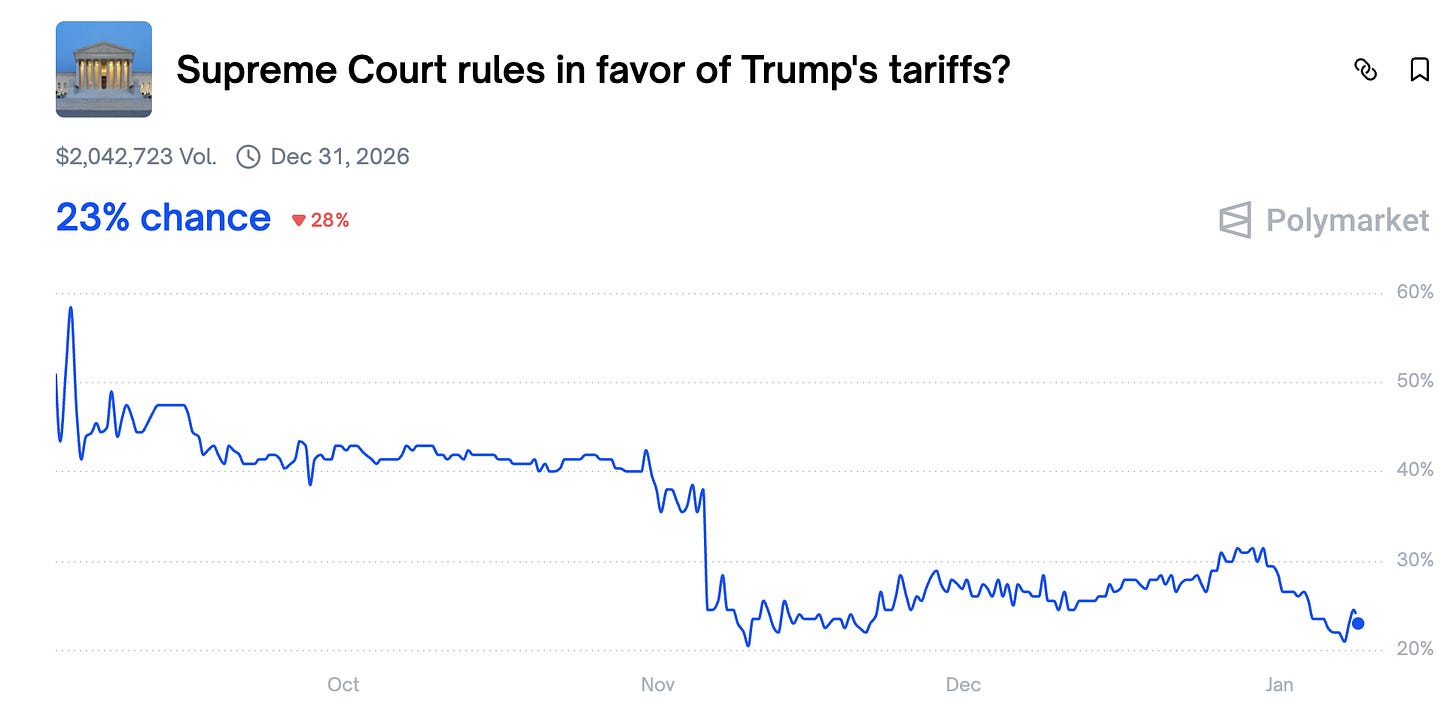 Flash update : 77% chance Supreme court will rule against Trump's tariff tomorrow!