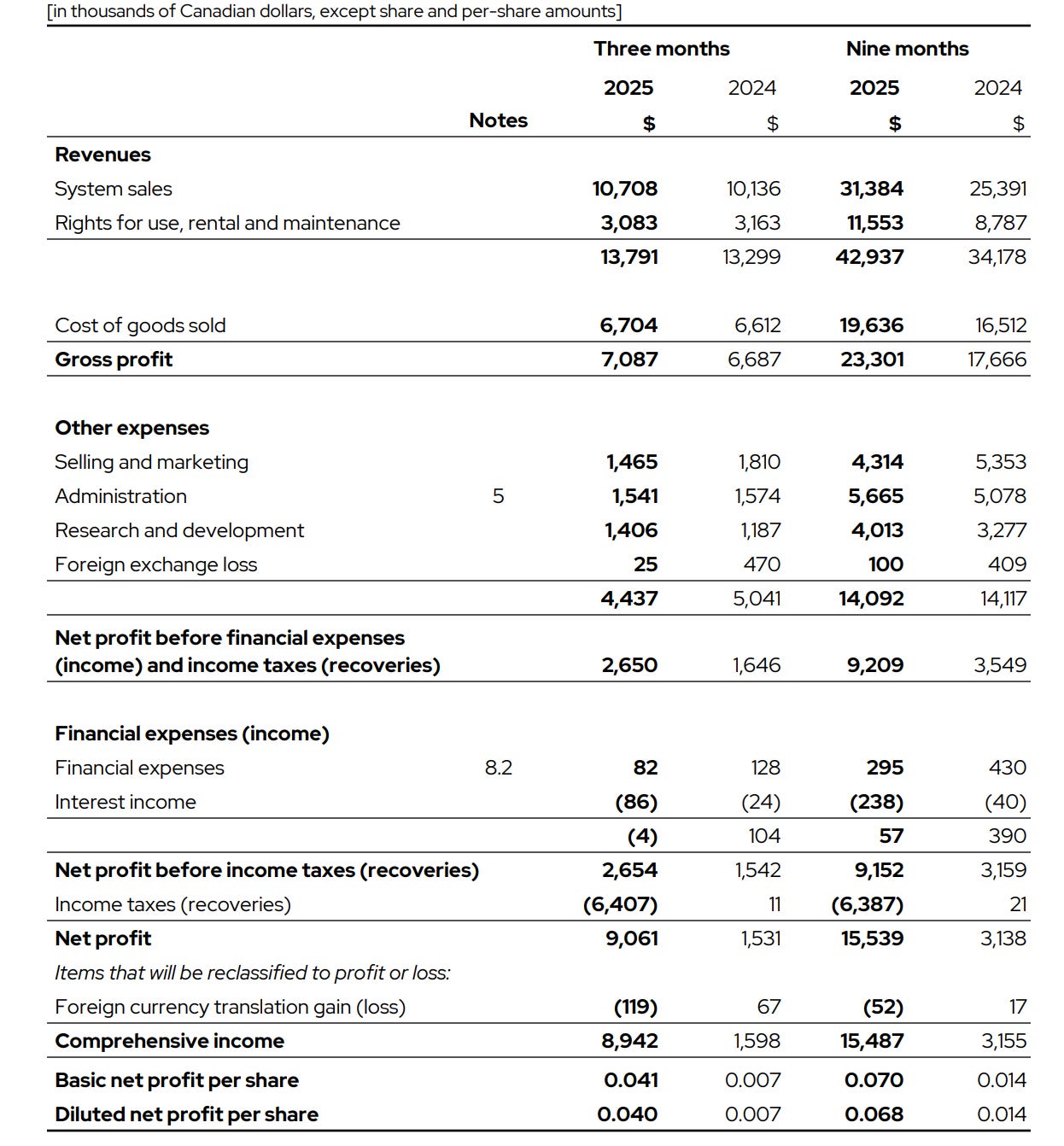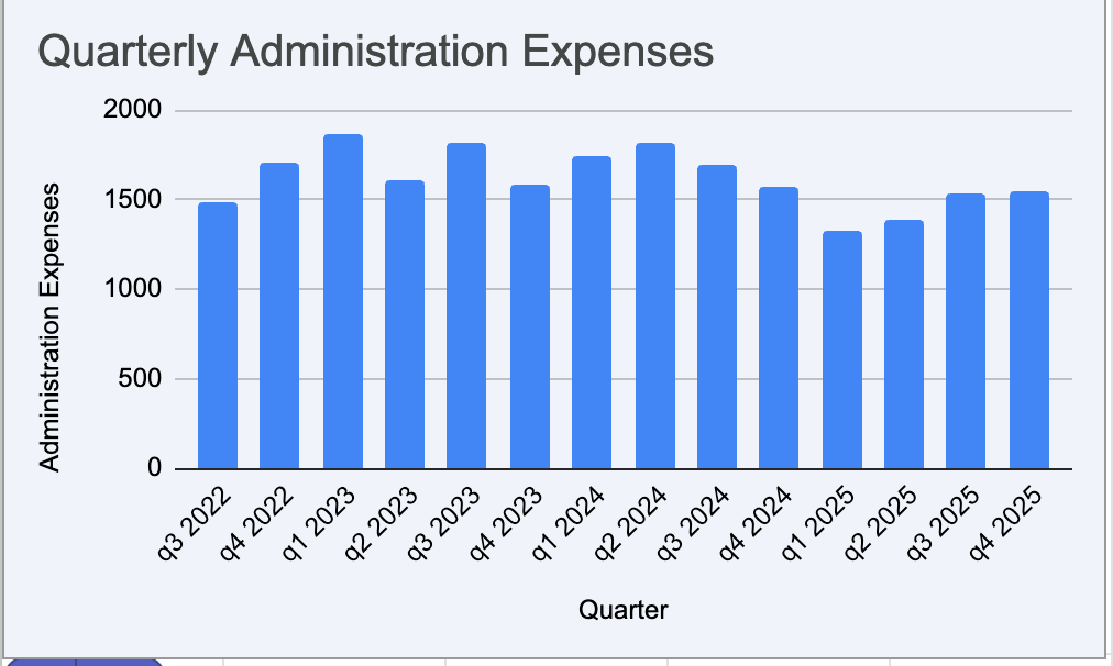 The other thing positive was a significant reduction in payroll. Management talks about re-priorities, but I suspect that some expenses were unjustified. We just have a tighter ship now. Here are the quarterly expenses of Sales and marketing and G&A in 000s CAD. You can observe the reduction starting in Q1 2025 for both.