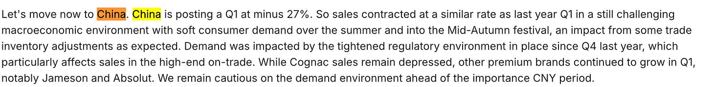 Remy Martin has not reporting yet their Q1 numbers, but considering the sharp decline in China and that Asia represents 50% of sales of cognac for $RCO I personally decided to sell my small line in Remy until October 28th results.