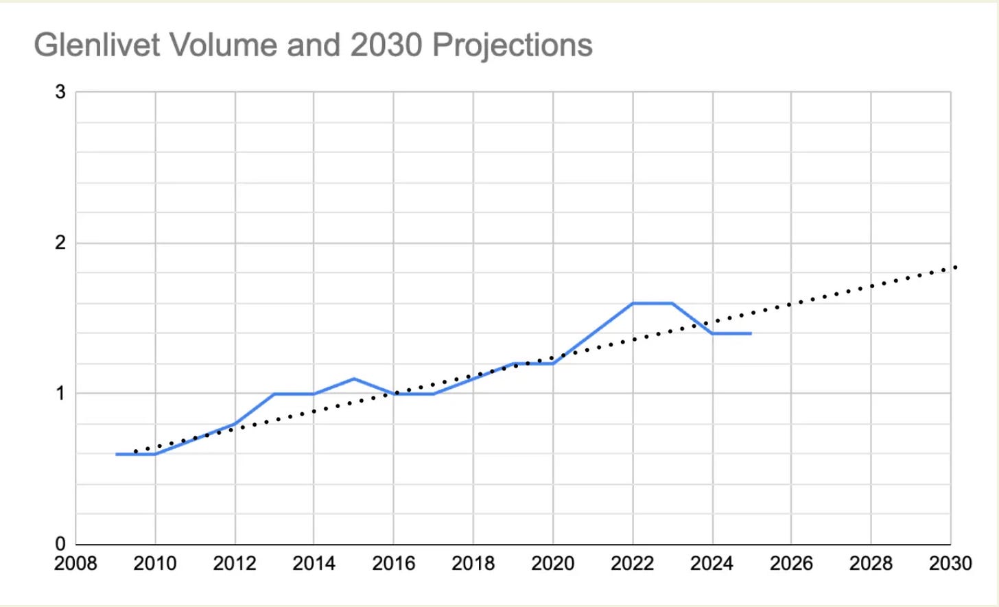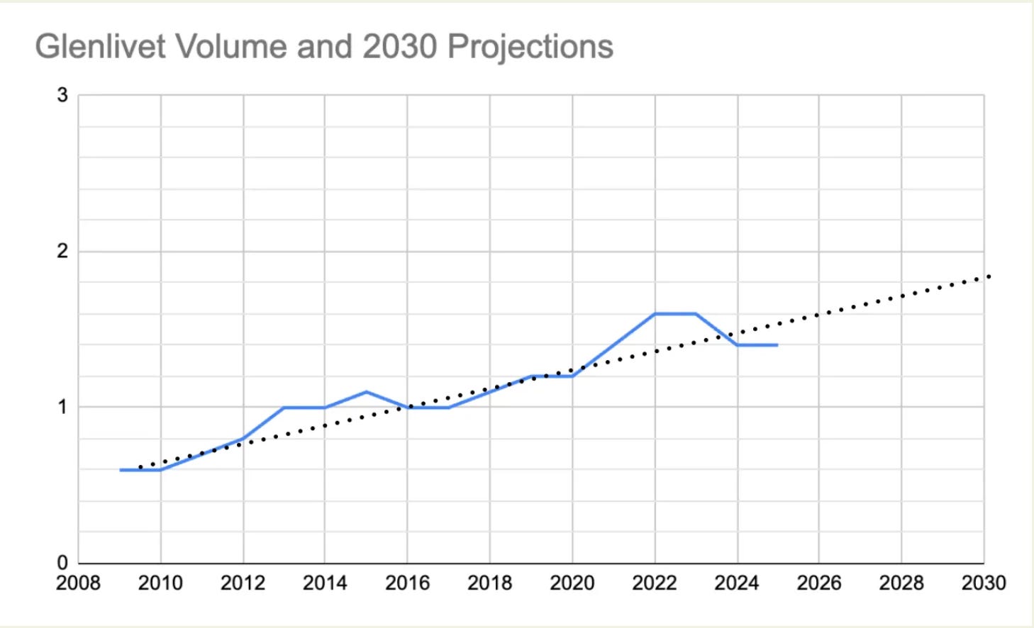 For Glenlivet, except some acceleration years (2013, 2022) and deceleration years (2016, 2024) the linear trend over 16 years is intact.